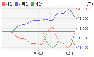 2월8일부터 전일까지 외국인이 2거래일 연속 순매도했다. 4주간을 기준으로 보면 외국인이 초반에 동종목을 순매수한 이후에 기세를 이어가며 43,131주를 순매수했지만, 기관은 순매수에서 순매도로 반전되면서 43,131주를 순매도했다. 개인의 순매수량에는 변함이 없다.
