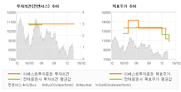 | 의견제시일자 | 증권사 | 투자의견 | 목표가 | | 20190213 | 이베스트투자증권 | BUY (MAINTAIN) | 11,000 | | 20190213 | 삼성증권 | BUY | 9,500 | | 20190213 | 대신증권 | BUY | 10,000 | | 20190213 | NH투자증권 | BUY(유지) | 10,000 |