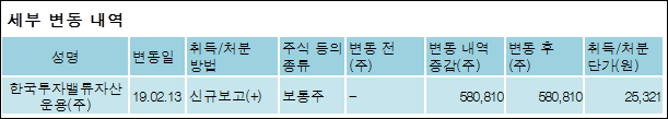 다음은 서흥의 지분 변동 내역과 보유 내역이다.