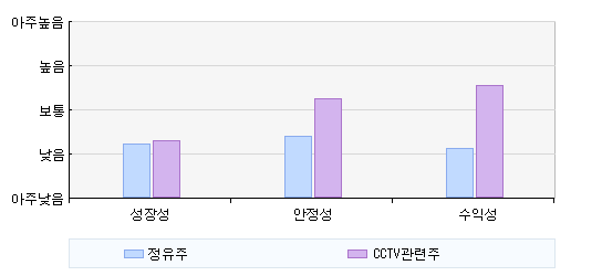 최근 20일 간 두 테마들의 움직임을 분석해보면 정유주 테마와 CCTV관련주 테마가 중장기에서 확실한 방향성을 보여주고 있지 않다.정유주 테마는 중장기측면에서 횡보하는 모습이 길어지고 있는데 반해, CCTV관련주 테마는 하락세가 약해지는 모습이 관찰되고 있다. 반면에 단기측면에서는 이들 테마들이 유사한 움직임을 보이고 있는데, 횡보하는 모습이 계속되고 있다. 20일 이격도 측면에서 두 테마 모두 정상범위를 벗어나지 않고 있다. |