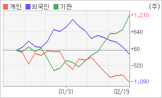 최근 한달간 주체별 거래비중을 살펴보면 기관이 46.1%로 가장 높은 참여율을 보였고, 외국인이 40.24%를 보였으며 개인은 25.59%를 나타냈다. 그리고 최근 5일간 거래비중은 기관 비중이 63.64%로 가장 높았고, 외국인이 59.16%로 그 뒤를 이었다. 개인은 38.09%를 나타냈다.