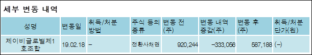 다음은 컨버즈의 지분 변동 내역과 보유 내역이다.