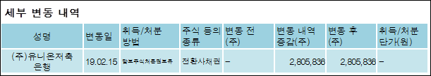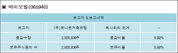 바이오빌(065940)은 20일 - (주)유니온저축은행의 보유주식이 증가되었다고 발표했다. 이는 직전 보고일보다 2,805,836주 증가하여 지분율은 5.99%로 상승했다. 이번 보고 사유는 채무자가채무의기한이익을상실함에따라,채무자와채권자(보고자)간체결한담보계약에근거채권자가담보물처분권한을취득함.로 알려졌다.