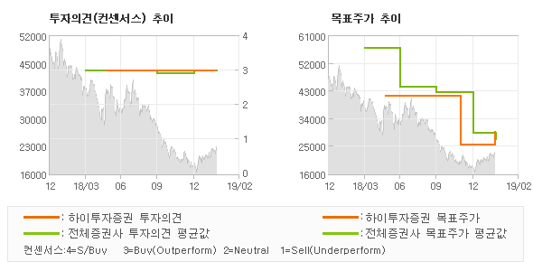 | 의견제시일자 | 투자의견 | 목표가격 | | 20190225 | BUY (MAINTAIN) | 29,000 | | 20181128 | BUY(MAINTAIN) | 25,000 | | 20180816 | BUY(MAINTAIN) | 41,000 | | 20180523 | 매수(신규) | 41,000 |