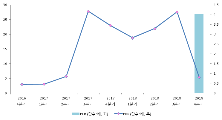 주가가 1주당 수익의 몇배가 되는지 나타내는 주가수익비율(PER)은 26.8배로 나타났다.주가가 1주당 순자산의 몇배인지 알려주는 주가순자산비율인 PBR은 0.81배이다.최근 1년 대비 이번 분기 PBR은 급락했다. 지난해 동기 PBR은 3.45배로 이번 4분기 PBR이 하락했다.