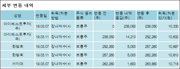 다음은 동일금속의 지분 변동 내역과 보유 내역이다.