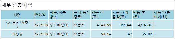 다음은 S&TC의 지분 변동 내역과 보유 내역이다.