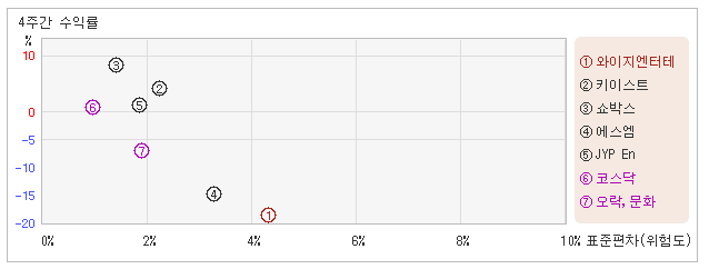 | 에스엠 | 3.3% | -14.9% | -4.5 |