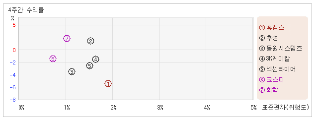 | 휴켐스 | SK케미칼 | 후성 | 동원시스템즈 | 넥센타이어 | |
