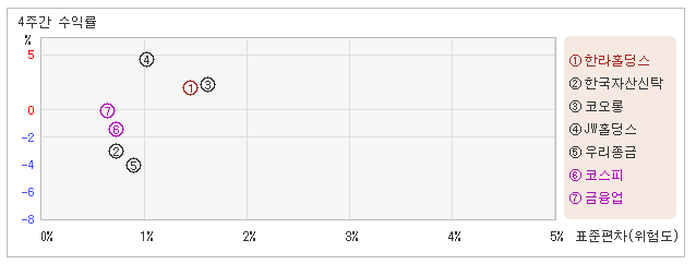 | 우리종금 | 0.9% | -5.2% | -5.7 |