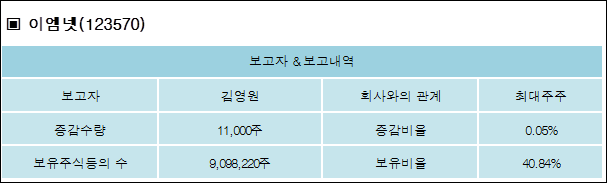 다음은 이엠넷의 지분 변동 내역과 보유 내역이다.