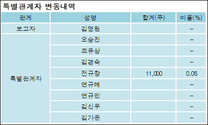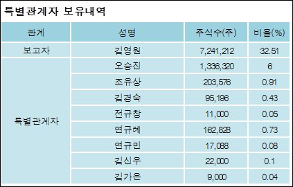 최대주주와 특수관계자의 지분 변동은 주가에 영향을 주는 요인이다. 특히 보유비율을 지속적으로 늘리거나 줄일 경우, 해당종목 투자시 유의할 필요가 있다.