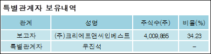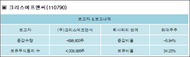 다음은 크리스에프앤씨의 지분 변동 내역과 보유 내역이다.