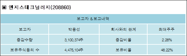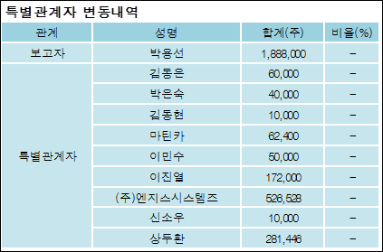 [ET투자뉴스][엔지스테크널러지 지분 변동] 박용선 외 8명 2.26%p 증가, 46.22% 보유
