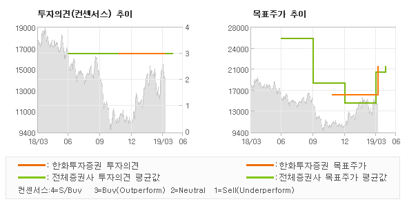 | 의견제시일자 | 증권사 | 투자의견 | 목표가 | | 20190404 | 한화투자증권 | BUY | 21,000 | | 20190326 | 신한금융투자 | BUY(유지) | 20,000 |