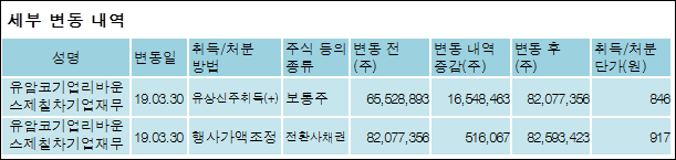 다음은 페이퍼코리아의 지분 변동 내역과 보유 내역이다.