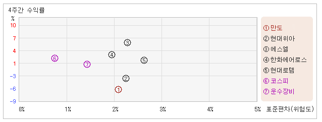 | 만도 | 2.1% | -7.0% | -3.3 |