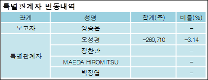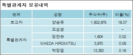 최대주주와 특수관계자의 지분 변동은 주가에 영향을 주는 요인이다. 특히 보유비율을 지속적으로 늘리거나 줄일 경우, 해당종목 투자시 유의할 필요가 있다.