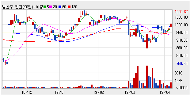 | 방산주(지수:1009.01 전일비:▲3.04%) |