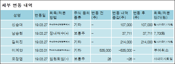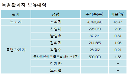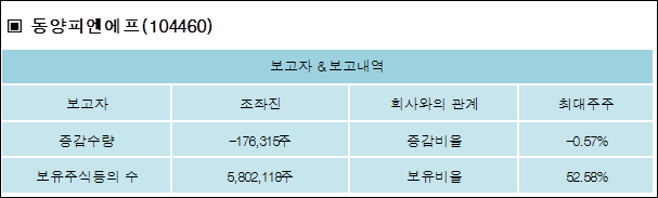 다음은 동양피엔에프의 지분 변동 내역과 보유 내역이다.