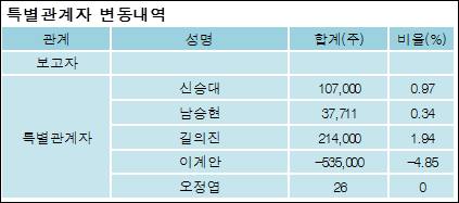 최대주주와 특수관계자의 지분 변동은 주가에 영향을 주는 요인이다. 특히 보유비율을 지속적으로 늘리거나 줄일 경우, 해당종목 투자시 유의할 필요가 있다.