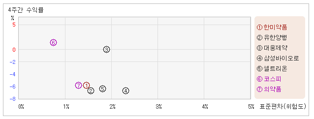 | 한미약품 | 1.4% | -7.3% | -5.2 |