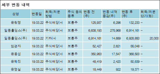 다음은 일동제약의 지분 변동 내역과 보유 내역이다.