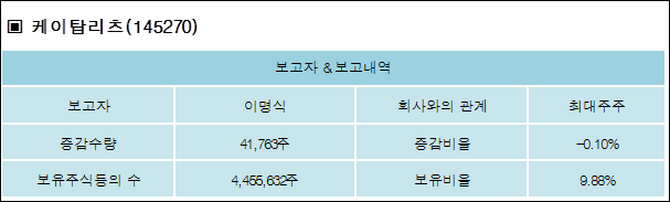 다음은 케이탑리츠의 지분 변동 내역과 보유 내역이다.