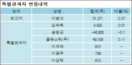 최대주주와 특수관계자의 지분 변동은 주가에 영향을 주는 요인이다. 특히 보유비율을 지속적으로 늘리거나 줄일 경우, 해당종목 투자시 유의할 필요가 있다.