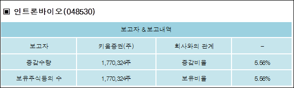 다음은 인트론바이오의 지분 변동 내역과 보유 내역이다.