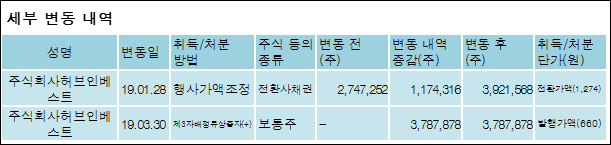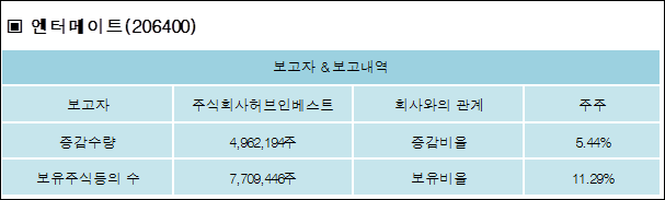 다음은 엔터메이트의 지분 변동 내역과 보유 내역이다.