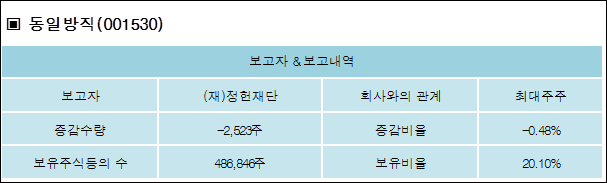 다음은 동일방직의 지분 변동 내역과 보유 내역이다.