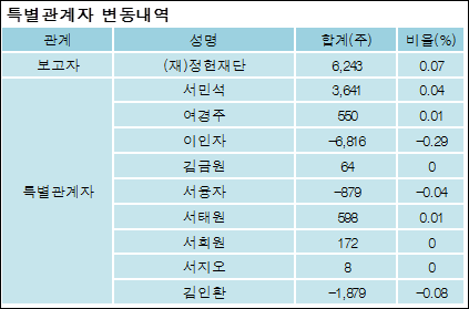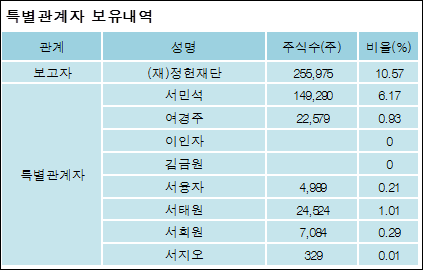 최대주주와 특수관계자의 지분 변동은 주가에 영향을 주는 요인이다. 특히 보유비율을 지속적으로 늘리거나 줄일 경우, 해당종목 투자시 유의할 필요가 있다.