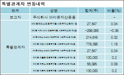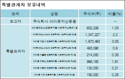 소리바다(053110)는 05일 기타 주식회사아이온자산운용을 비롯한 특별관계자의 보유주식이 증가되었다고 발표했다. 이는 직전 보고일보다 1,276,831주 증가하여 지분율은 9.5%로 상승했다. 이번 보고 사유는 주식추가매수로인한보유비중증가로 알려졌다.