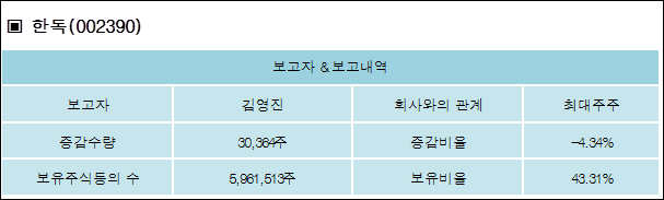 다음은 한독의 지분 변동 내역과 보유 내역이다.