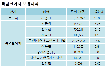 최대주주와 특수관계자의 지분 변동은 주가에 영향을 주는 요인이다. 특히 보유비율을 지속적으로 늘리거나 줄일 경우, 해당종목 투자시 유의할 필요가 있다.