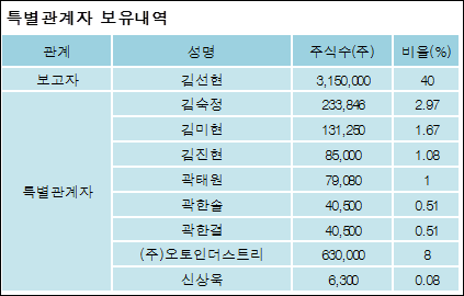최대주주와 특수관계자의 지분 변동은 주가에 영향을 주는 요인이다. 특히 보유비율을 지속적으로 늘리거나 줄일 경우, 해당종목 투자시 유의할 필요가 있다.