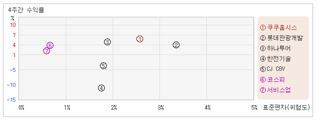 | 쿠쿠홈시스 | 롯데관광개발 | CJ CGV | 한전기술 | 하나투어 | |