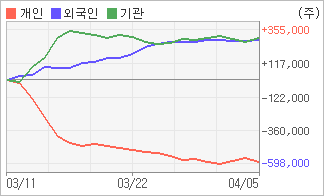 | 외국인/기관 순매수, 개인은 순매도(한달누적) 전일 외국인과 기관이 각각 8,303주, 27,063주를 순매수 했다. 4주간을 기준으로 보면 외국인이 초반에 동종목을 순매수한 이후에 기세를 이어가며 286,261주를 순매수했고, 기관도 방향성있는 매매를 하면서 301,006주를 순매수했다. 반면 개인들은 매도쪽으로 방향을 잡으면서 583,423주를 순매도한 것으로 나타났다. |