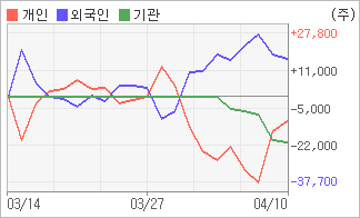 | 기관과 개인은 순매도, 외국인은 순매수(한달누적) 전일까지 외국인이 2일 연속, 기관이 5일 연속 각각 동종목을 순매도 했다. 4주간을 기준으로 보면 외국인이 매매관점을 매도에서 매수로 전환하면서 16,844주를 순매수한 반면, 기관은 최근 매도관점을 가지면서 20,078주를 순매도했고, 개인들도 매도 우위로 반전되면서 10,611주를 순매도한 것으로 집계됐다. |