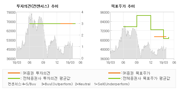 | 의견제시일자 | 증권사 | 투자의견 | 목표가 | | 20190415 | 유안타증권 | BUY(유지) | 62,000 | | 20190415 | SK증권 | BUY(유지) | 64,000 | | 20190327 | 하나금융투자 | BUY | 54,000 | | 20190319 | NH투자증권 | BUY(유지) | 60,000 |