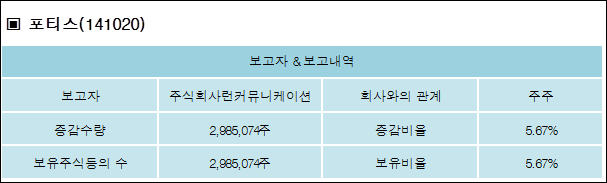 다음은 포티스의 지분 변동 내역과 보유 내역이다.