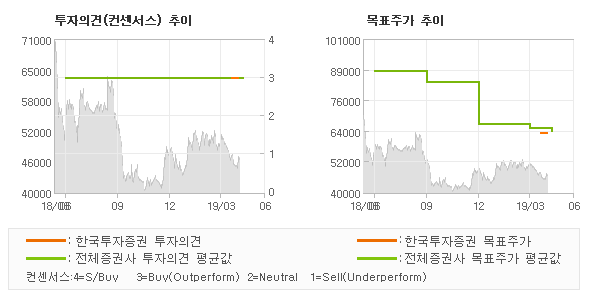 | 의견제시일자 | 증권사 | 투자의견 | 목표가 | | 20190429 | DB금융투자 | BUY(유지) | 66,000 | | 20190429 | 하나금융투자 | BUY | 81,000 | | 20190429 | KB증권 | BUY(유지) | 62,500 | | 20190426 | 현대차증권 | BUY | 57,000 |