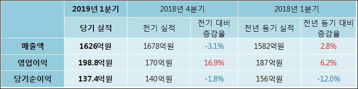 4월 30일 케이티스카이라이프(053210)의 2019년 1분기 개별 잠정 실적이 발표됐다. 매출액과 영업이익은 작년 같은 기간 대비 각각 2.8%, 6.2% 확대되어1626억원, 198.8억원으로 발표되었다. 그러나 당기순이익은 12% 축소되어 137.4억원으로 집계되었다.
