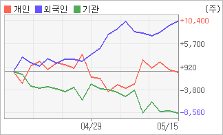 | 기관과 개인은 순매도, 외국인은 순매수(한달누적) 5월13일부터 전일까지 외국인이 3거래일 연속 순매수를 보였다. 4주간을 기준으로 보면 외국인이 초반에 동종목을 순매수한 이후에 기세를 이어가며 10,376주를 순매수한 반면, 기관은 매도 관점으로 접근하면서 8,508주를 순매도했고, 개인들도 초반에 동종목을 순매도한 이후에 근래에는 순매도량을 줄이면서 73주를 순매도한 것으로 집계됐다. |
