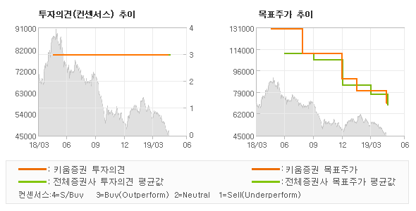 | 의견제시일자 | 투자의견 | 목표가격 | | 20190516 | BUY(유지) | 70,000 | | 20190213 | BUY(MAINTAIN) | 80,000 | | 20181226 | BUY(유지) | 90,000 | | 20180822 | BUY(MAINTAIN) | 110,000 | | 20180816 | BUY(MAINTAIN) | 130,000 |