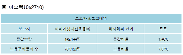 다음은 아모텍의 지분 변동 내역과 보유 내역이다.
