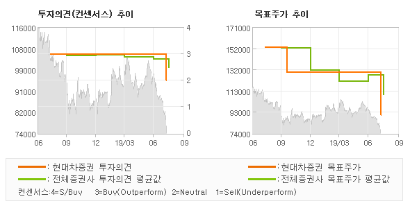 | 의견제시일자 | 투자의견 | 목표가격 | | 20190805 | MARKETPERFORM | 90,000 | | 20190502 | BUY | 130,000 | | 20190207 | BUY | 130,000 | | 20181105 | BUY | 130,000 | | 20181017 | BUY | 130,000 |