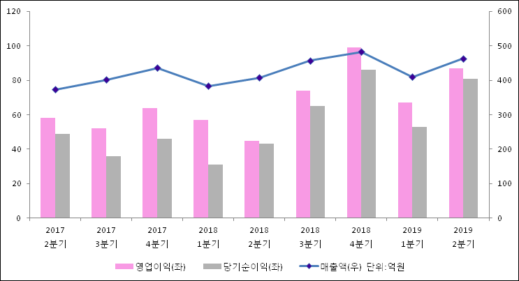 8월 6일 아이센스(099190)의 2019년 2분기 연결 잠정 실적이 발표됐다. 매출액, 영업이익, 당기순이익 모두 전년 같은 기간 대비 증가했다. 매출액은 13.4%, 늘어난 463억원으로 발표됐다. 영업이익과 당기순이익은 각각 94.2%, 89.8% 증가하여 86.7억원, 80.9억원으로 기록 되었다.