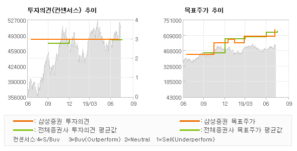 | 의견제시일자 | 투자의견 | 목표가격 | | 20190802 | BUY | 660,000 | | 20190510 | BUY | 600,000 | | 20190326 | BUY | 600,000 | | 20190213 | BUY | 540,000 |